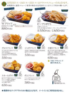 ★さらに12月20日(土)までに御予約すると早期予約特典としてビーフリポテトRプレゼント🎁