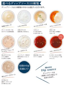 ★ディップソースは10種類の中から選べます。1種類120円(税込)で追加も可能。